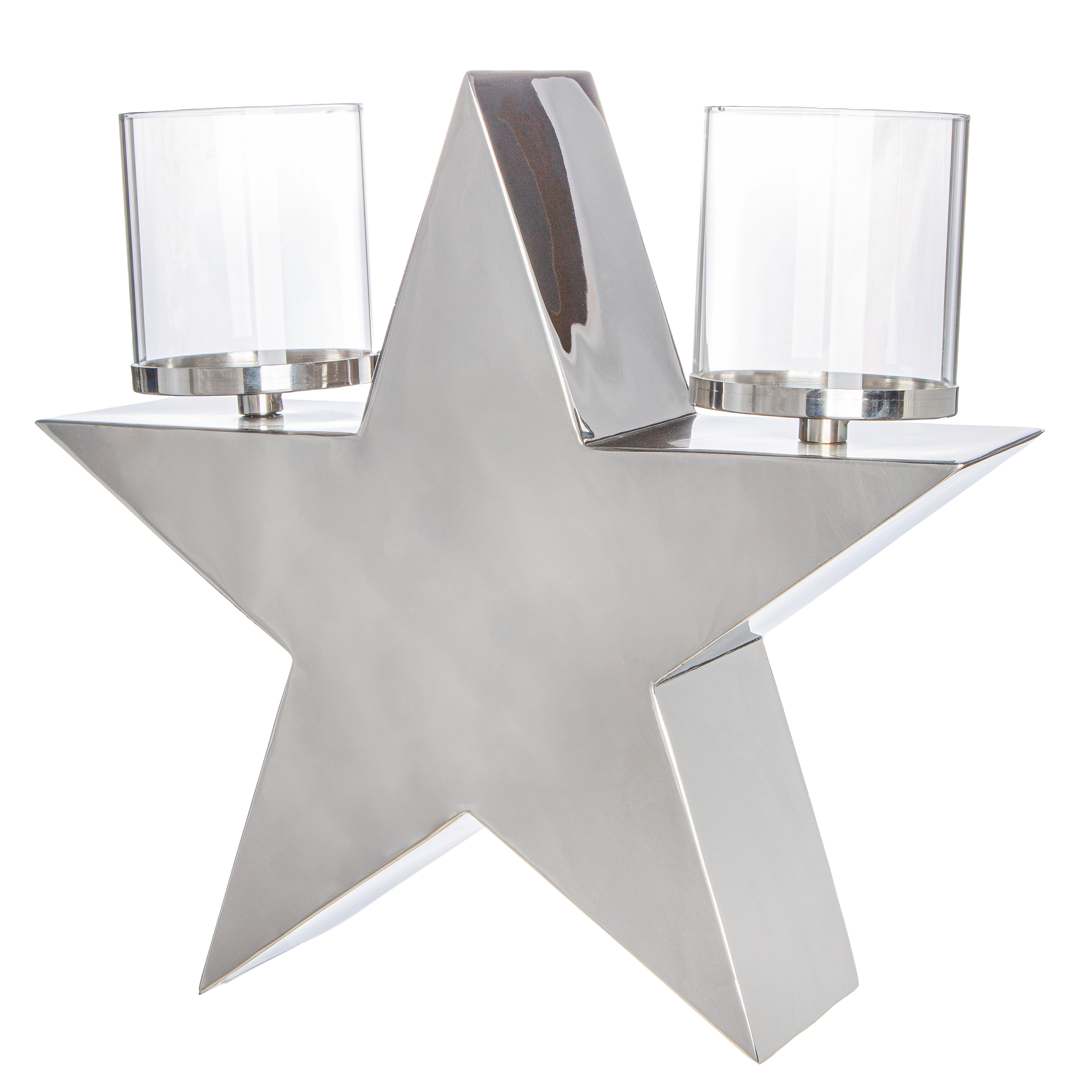 Die beiden Glaseinsätze bieten Platz für Teelichter oder kleine Stumpenkerzen und zaubern ein elegantes Lichtspiel. Dank seines außergewöhnlichen Designs eignet sich der „Leuchtstern“ perfekt als Blickfang auf dem Tisch, Sideboard oder der Fensterbank. Ein exklusives Dekoelement, das nicht nur in der Weihnachtszeit begeistert.